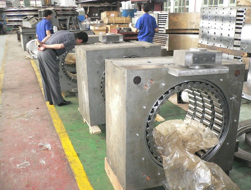 原材料(鑄件、鍛胚)→ 粗銑 → 調(diào)質(zhì) → 精車(chē)加工 → 鏜孔 → 內(nèi)孔留磨 → 磨內(nèi)孔 → 裝銅板 → 包裝發(fā)貨