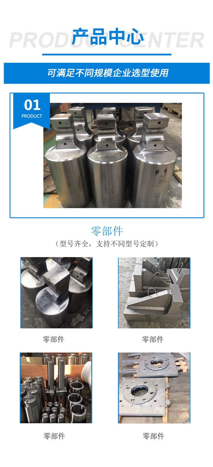 主要產(chǎn)品是大型機加工件,各種軸類(光軸,傳動軸,花鍵軸),非標零部件,開卷線用減速機,非標鉚焊結(jié)構(gòu)件,
